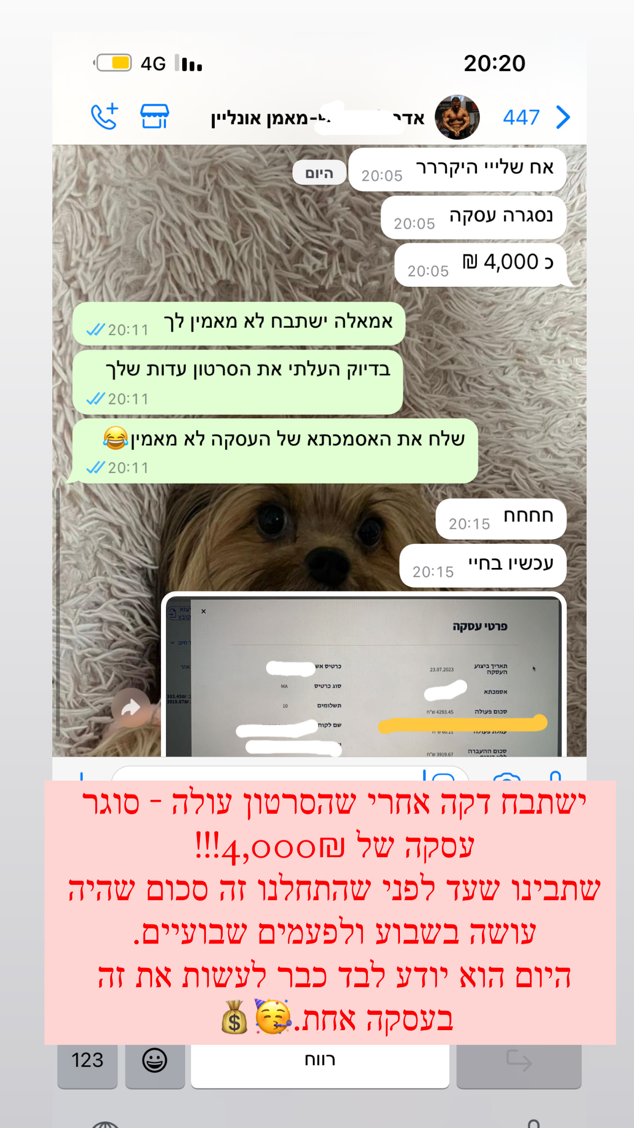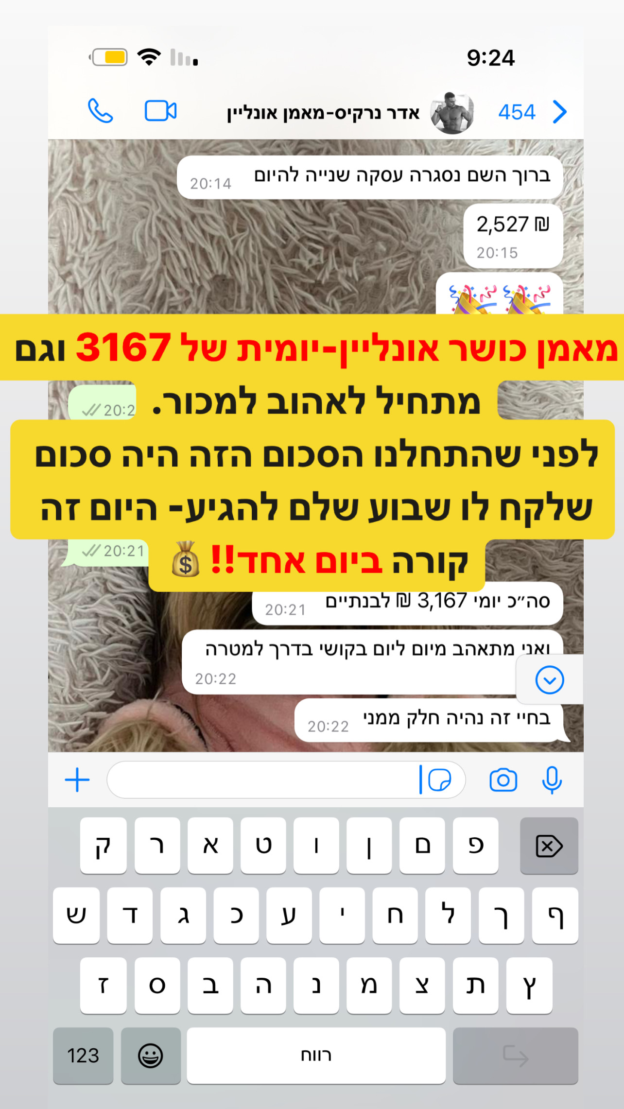 התחלתי לסגור סכומים של 50-70 אלף בשבוע ולהגיע למחזורי עסקאות של 6 ספרות בחודש למאמנים בתחום התזונה וכושר.
