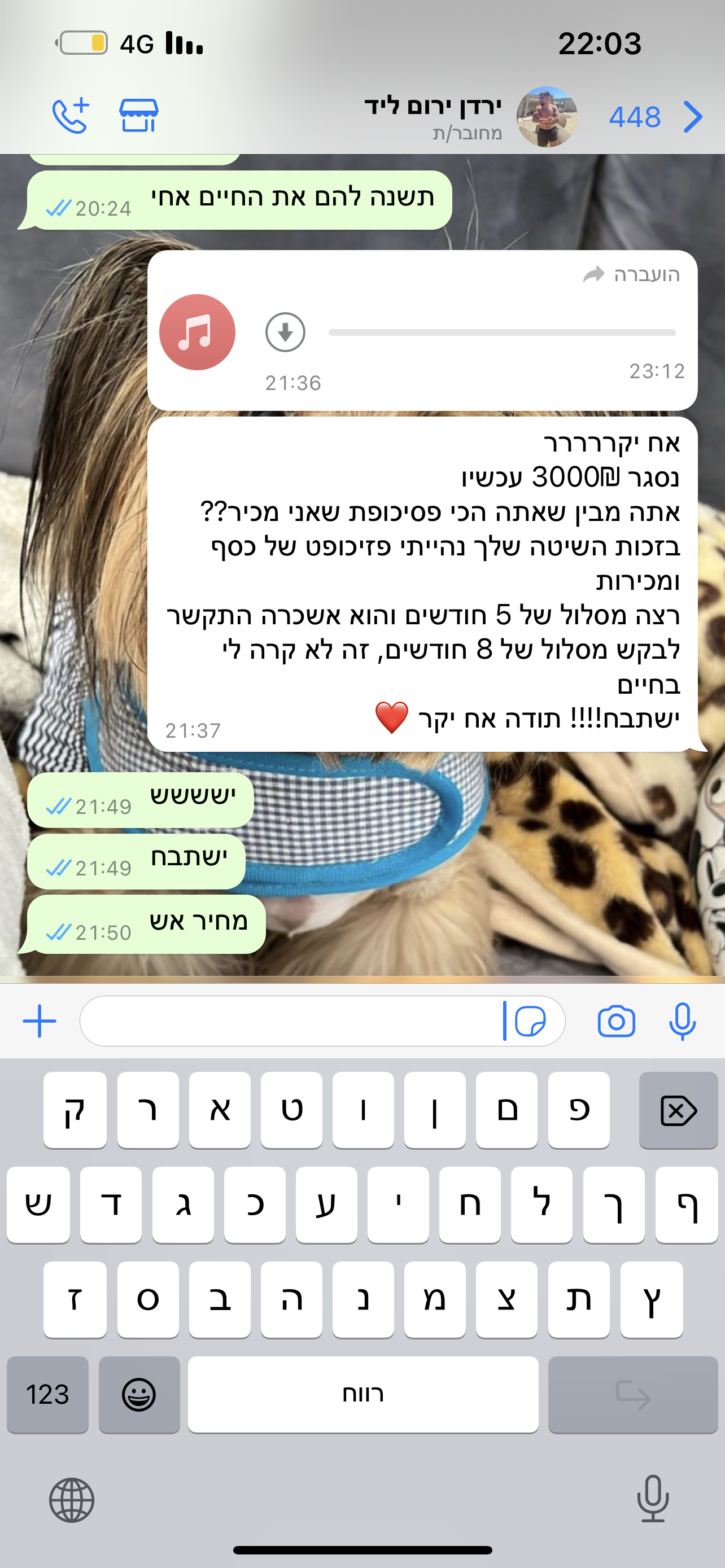 שילוב של כל זה כמו גם הכשרות שעברתי בתחום בתחום ה-NLP עזרו לי להגיע לתוצאות יוצאות דופן.