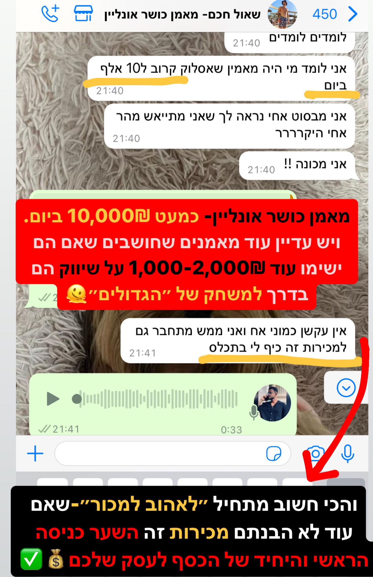 היום אני מעביר את השיטה הזאת למאמנים בתוכנית הכשרת המכירות שלי שעוזרת להם להכפיל ולשלש מחזורים, ולחסוך את כל הזמן, כסף ואנרגיה, שאני בזבזתי במשך שנים!